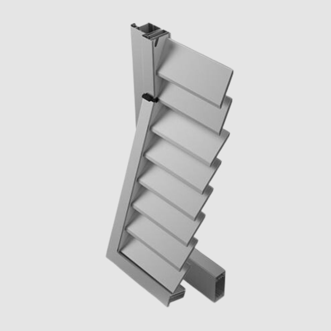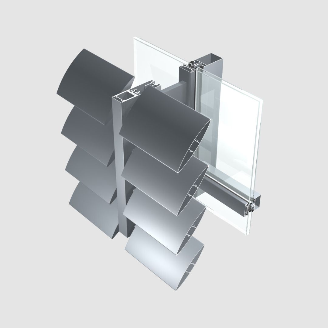 Aluminum blinds are used for partial or complete shading of large areas - most often the facades of office buildings and industrial facilities. Lamellas are used for shading, which can be of different dimensions, fixed or movable. Brisolei are very resistant and contribute to a large extent to the thermal insulation of the building. The solar radiation absorbed by the shade or the brisolei is scattered outside the facade, which makes the efficiency of outdoor shades up to 30% higher than that of indoor shades, thanks to natural ventilation, of course. The ALUK FRS sun protection system is designed for the production of high-quality shades with extruded aluminum lamellas of dimensions 150, 200, 250, 310 and 360 mm, and includes all the necessary components and accessories for the production of fixed and movable brisoleis.